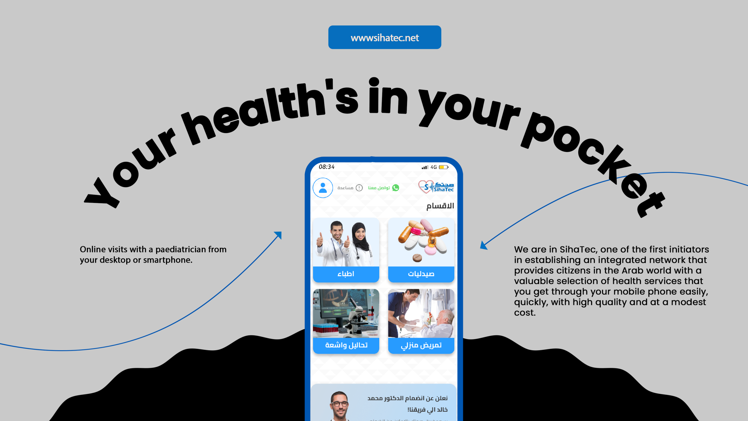 We are in SihaTec, one of the first initiators in establishing an integrated network that provides citizens in the Arab world with a valuable selection of health services that you get through your mobile phone easily, quickly, with high quality and at a modest cost.